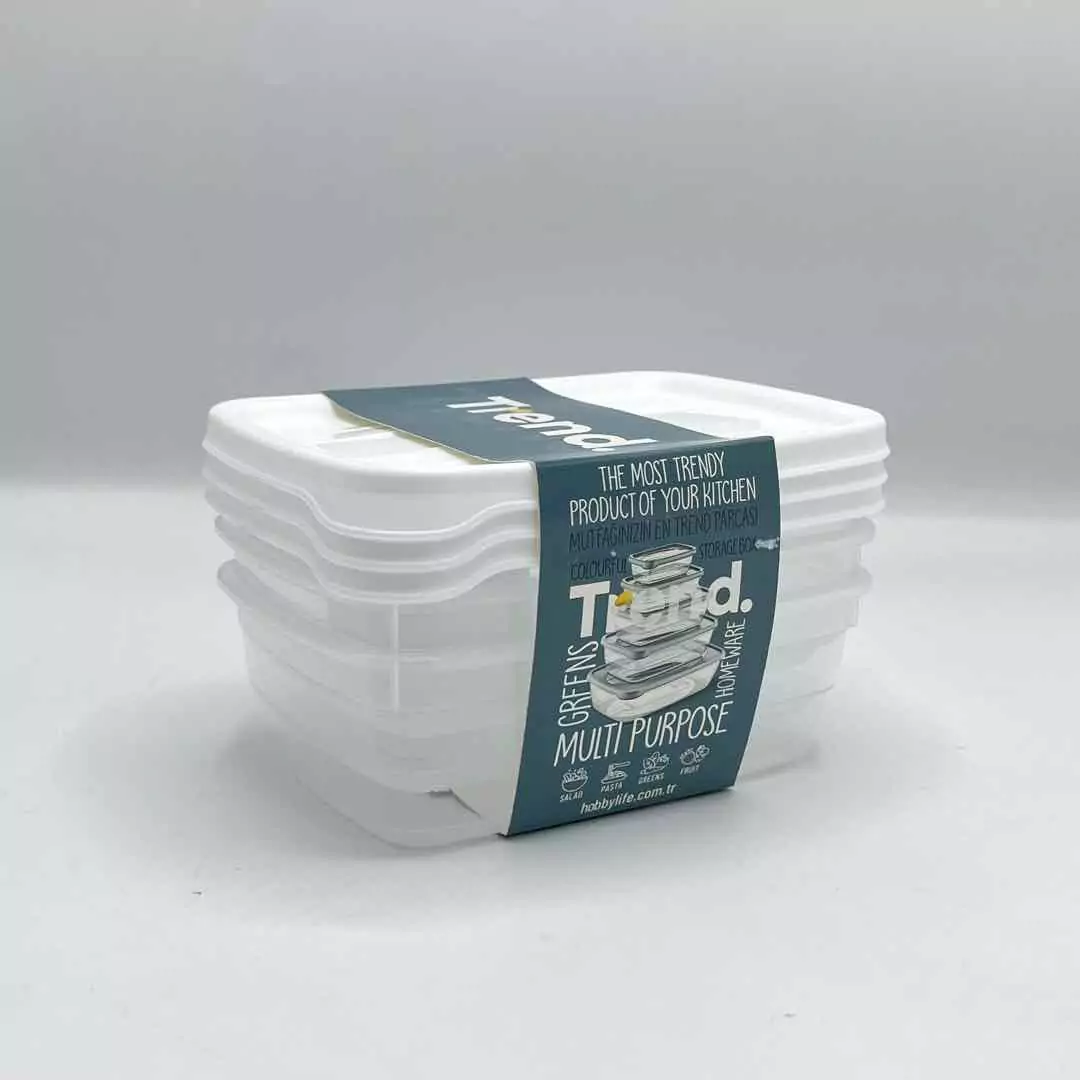 ظرف نگهدارنده مستطیل 3 عددی 600 میل سفید هوبی لایف 021015